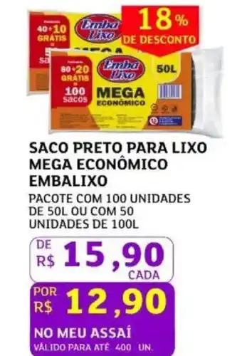 Saco preto para lixo mega econômico embalixo em destaque na Assaí Atacadista