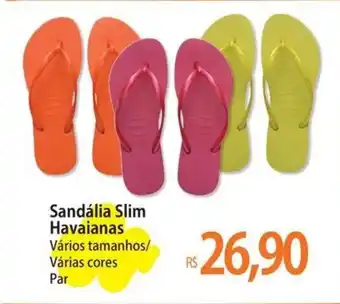 Sandália Slim Havaianas está disponível com desconto especial na Atacadão, válido de 02-02-2026 até 08-02-2026. Veja aqui as condições e o valor atual. Compare com outras promoções parecidas de Sandália Slim Havaianas para encontrar a opção mais vantajosa.