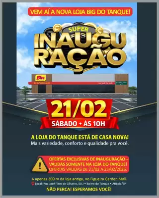 O folheto mais recente da Big Supermercados desta semana está disponível no topo desta página. Esse panfleto, com validade de 17-02-2026 a 26-02-2026, apresenta a visão completa dos encartes atuais da Big Supermercados. Você pode ver o número de páginas e até quando ele é válido. As informações foram verificadas pela Big Supermercados e se aplicam a diversas regiões, incluindo Belo Horizonte, Brasília e Curitiba.