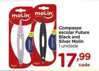 Compasso escolar Future Black and Silver Molin em promoção na Carrefour