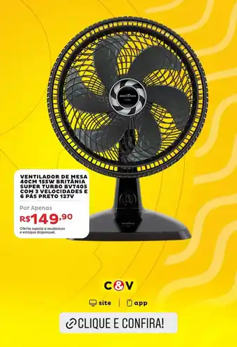 Agora em promoção na Casa e Vídeo: Ventilador de mesa 40cm 155w britânia super turbo bvt405 com 3 velocidades e 6 pás preto 127v✅ Válido de 13-01 a 29-01.