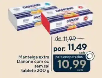Manteiga extra Danone com ou sem sal tablete em destaque na Coop