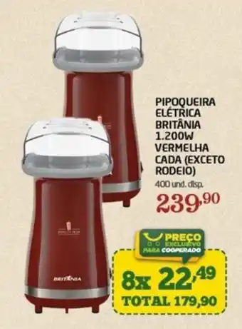 Pipoqueira elétrica britânia 1.200w vermelha cada em promoção online na Cooper