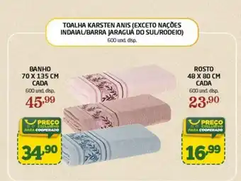 O preço da Toalha karsten anis BANHO 70 x 135 cm também pode ser encontrado acima na página, juntamente com a data em que a oferta está disponível. Você também pode verificar os preços no atual Tabloide Cooper ou no site de Cooper. As ofertas garantem a compra dos de produtos da Cooper ao preço mais baixo.