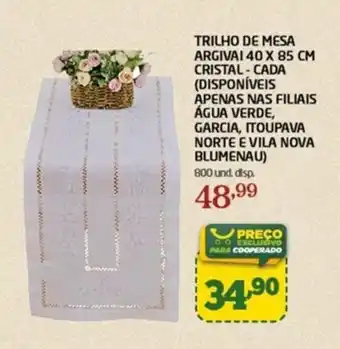 O preço da Trilho de mesa argivai 40 x 85 cm cristal-cada também pode ser encontrado acima na página, juntamente com a data em que a oferta está disponível. Você também pode verificar os preços no atual Tabloide Cooper ou no site de Cooper. As ofertas garantem a compra dos de produtos da Cooper ao preço mais baixo.