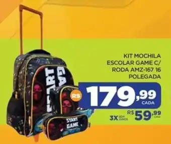 Oferta de Kit mochila escolar game c/ roda amz-167.16 polegada na DB Supermercados