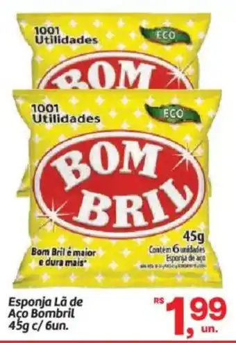 Esponja Lã de Aço Bombril c/ 6un. está disponível com desconto especial na Fort Atacadista, válido de 13-04-2026 até 30-04-2026. Veja aqui as condições e o valor atual. Compare com outras promoções parecidas de Esponja Lã de Aço Bombril c/ 6un. para encontrar a opção mais vantajosa.