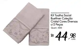 Agora em promoção na Giassi Supermercados: Kit Toalha Social Buettner Coleção Cristal Cores Diversas c/2 Peças✅ Válido de 16-04 a 13-05.