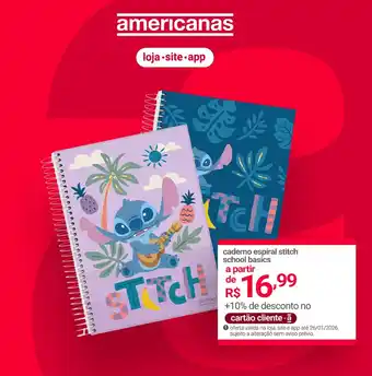 Agora em promoção na Lojas Americanas: caderno espiral stitch school basics✅ Válido de 21-01 a 26-01.