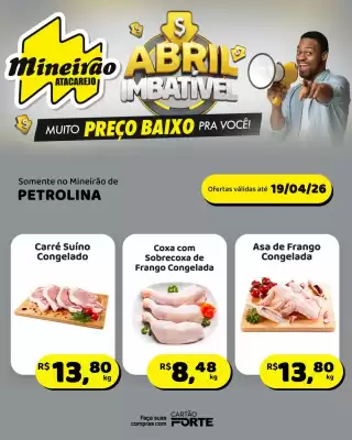 Semanalmente, é publicada uma nova edição do folheto de Atacadista da Mineirão Atacarejo. Aqui você sempre vê a versão mais recente, com validade de 13-04-2026 até 19-04-2026. Dessa forma, você fica por dentro das ações locais em Sete Lagoas e sabe exatamente quando a nova edição estará disponível.