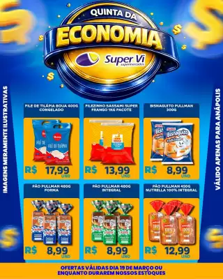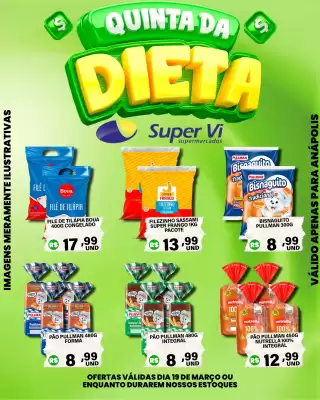 Semanalmente, é publicada uma nova edição do folheto de Supermercados da Super Vi Supermercados. Aqui você sempre vê a versão mais recente, com validade de 19-03-2026 até 19-03-2026. Dessa forma, você fica por dentro das ações locais em Anápolis e sabe exatamente quando a nova edição estará disponível.