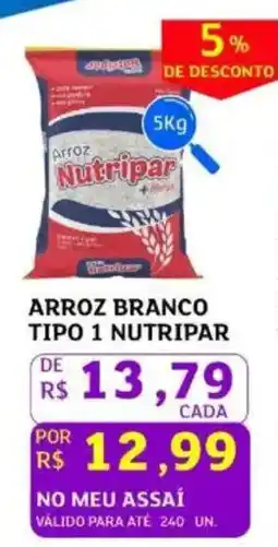 Assaí Atacadista Arroz Branco Tipo 1 Nutripar 5kg ofertaArroz Branco Tipo 1 Nutripar 5kgAssaí AtacadistaR$ 17,5006 março 202310 março 2023