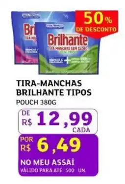 | 2 | Tira-manchas brilhante tipos 380 g | Assaí Atacadista | R$ 12,99 | R$ 6,49 | 50% DE DESCONTO | 24 abril 2026 | 27 abril 2026 | Ver oferta | |