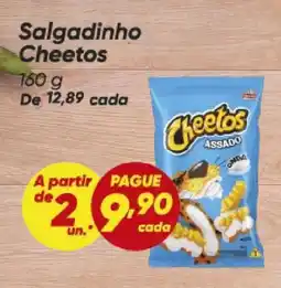 | Salgadinho Cheetos 160 g | Dia | R$ 12,89 | R$ 9,90 | R$ 2,99 Desconto | 02 março 2026 | 04 março 2026 | |