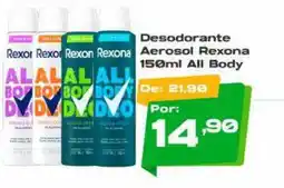Barbosa Supermercados Desodorante Rexona Aero ofertaDesodorante Rexona Aero 150 mlBarbosa SupermercadosR$ 19,99R$ 14,99R$ 5,00 Desconto07 janeiro 202613 janeiro 2026