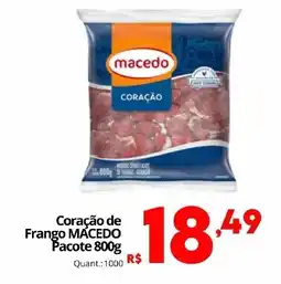 | Coração de Frango MACEDO Pacote 800 g | Althoff Supermercados | R$ 18,49 | 01 abril 2026 | 14 abril 2026 | |||