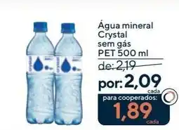 2Coop Água mineral Crystal sem gás PET ofertaÁgua mineral Crystal sem gás PET 500 mlCoopR$ 2,19R$ 1,89R$ 0,30 Desconto09 fevereiro 202612 fevereiro 2026 Ver oferta