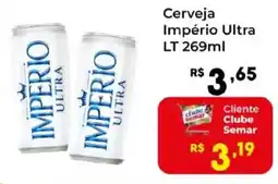 | Cerveja Império Puro Malte Lata 269 ml | Semar Supermercado | R$ 2,79 | R$ 2,69 | R$ 0,10 Desconto | 13 outubro 2025 | 19 outubro 2025 | |