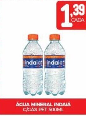 Econômico Atacadão Agua Mineral Indaiá S/G ofertaAgua Mineral Indaiá S/G 1.5 lEconômico AtacadãoR$ 2,49R$ 2,39R$ 0,10 Desconto10 setembro 202512 setembro 2025