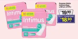 Supermercados Savegnago Absorvente protetor diário Intimus Indicador de Troca com 80 unidades, ofertaAbsorvente protetor diário Intimus Indicador de Troca com 80 unidades,Supermercados SavegnagoR$ 21,90R$ 20,80R$ 1,10 Desconto05 março 202617 março 2026