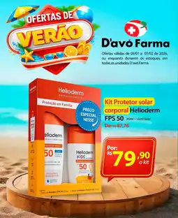 | Kit Protetor solar corporal Helioderm FPS 50 | D'avó Supermercado | R$ 87,76 | R$ 79,90 | R$ 7,86 Desconto | 09 janeiro 2026 | 01 fevereiro 2026 | |
