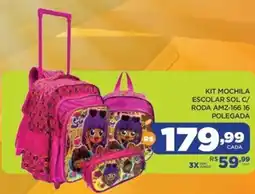 Kit mochila escolar sol c/ roda amz-166.16 polegada