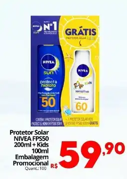 | Protetor Solar NIVEA FPS50 + Kids 200 ml + 100 ml | Althoff Supermercados | R$ 59,90 | 21 janeiro 2026 | 03 fevereiro 2026 | |||