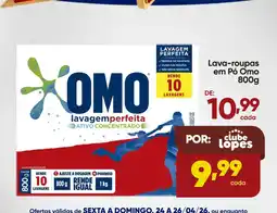 | 2 | Lava-roupas em Pó Omo 800 g | Lopes Supermercados | R$ 10,99 | R$ 9,99 | R$ 1,00 Desconto | 24 abril 2026 | 26 abril 2026 | Ver oferta | |