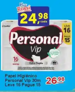 | Papel Higiénico Personal Vip Lv16 Pg15 Folha Dupla 30m | Rossi Supermercado | R$ 19,98 | 28 setembro 2021 | 05 outubro 2021 |