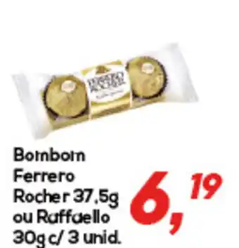 | Bombom Raffaello Caixa 90g | Comercial Esperança | R$ 13,99 | 02 maio 2023 | 15 maio 2023 | |||
