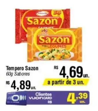 | Tempero Sazón 60 g | Supermercados Goes | R$ 5,39 | 03 novembro 2025 | 08 novembro 2025 | |||