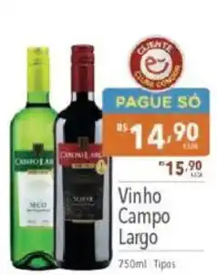 Extrabom Supermercados Vinho Campo Largo Tinto ou Rosé ofertaVinho Campo Largo Tinto ou Rosé 750 mlExtrabom SupermercadosR$ 16,99R$ 14,99R$ 2,00 Desconto26 março 202608 abril 2026